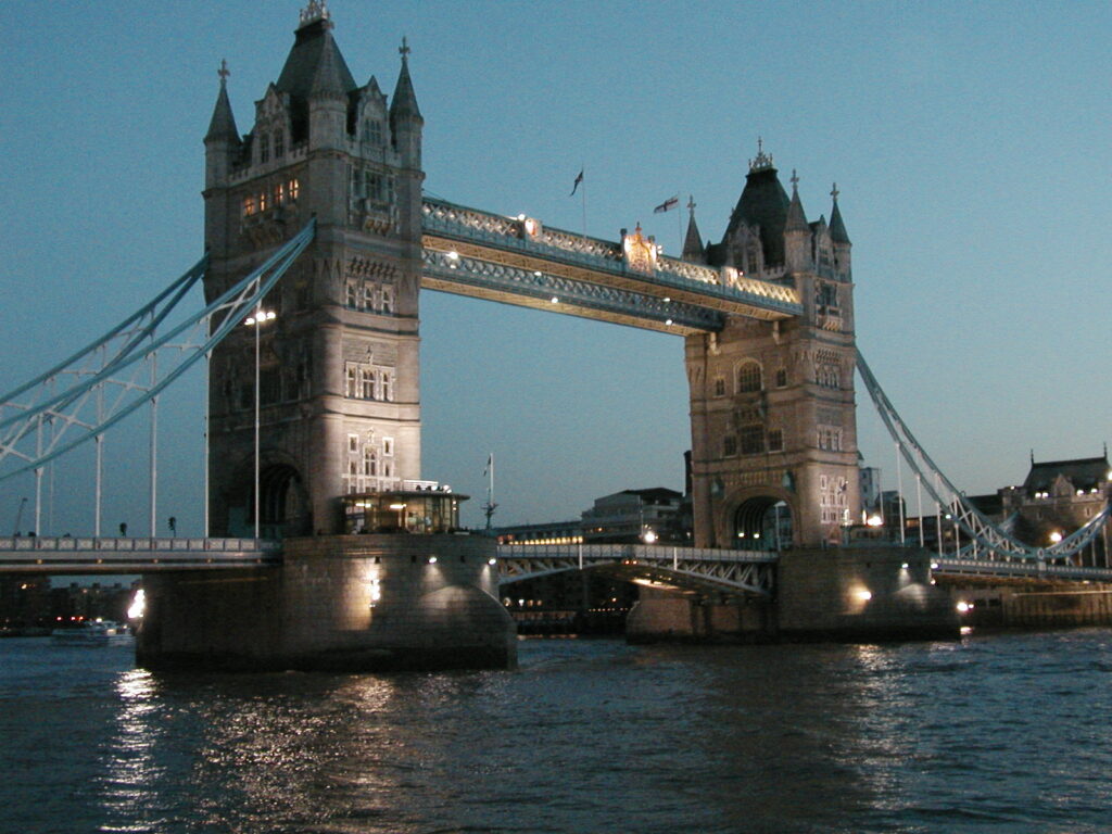Die Tower Bridge wurde 1894 eröffnet und verbindet seither das auf der Südseite der Themse gelegene Southwark mit dem auf der Nordseite gelegene Tower Hamlets. Die Brücke ist knapp 50 Meter lang und ist eine Klapp- und Hängebrücke.
